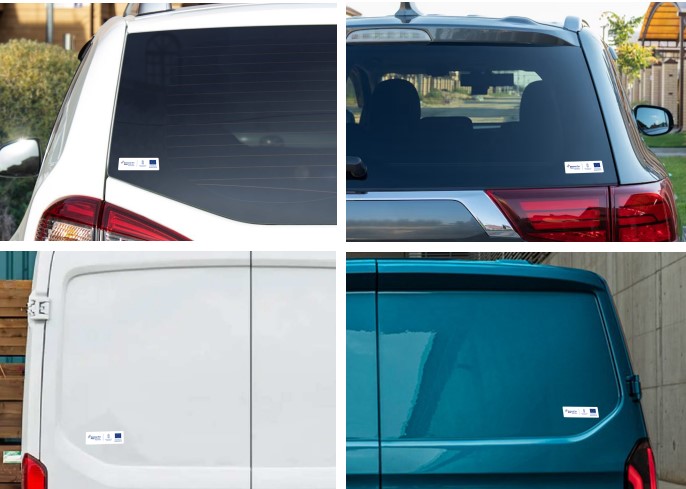 A matricát a gépjármű hátsó szélvédőjére belülről vagy kívülről, a kishaszongépjármű hátuljára pedig kívülről kell felhelyezni úgy, hogy min. 5 cm-re helyezkedjen el az ablak szélétől.